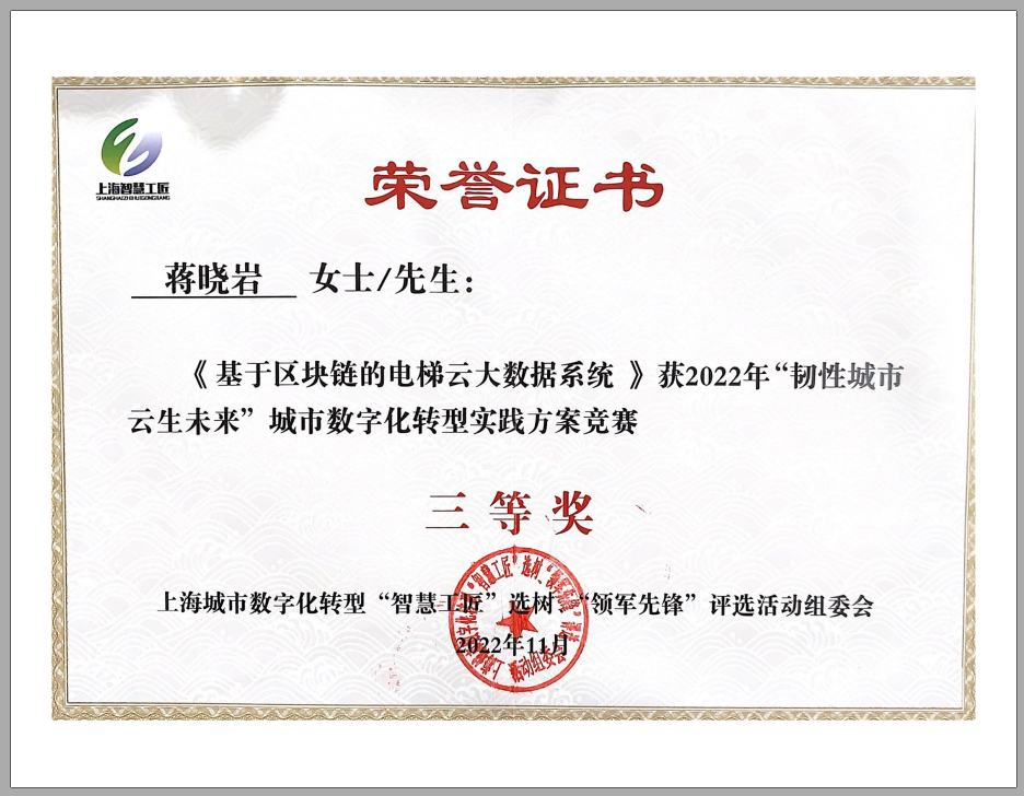 Október 30-án a Telecom Training Centerben rendezték meg a Shanghai Urban Digital Transformation Practice Scheme Competition döntőjét. Az előzetes értékelés, felülvizsgálat és végső döntő után a STEP "Blokkláncon alapuló Liftfelhő Big Data System" projekt nyerte el a verseny harmadik díját. Zhang Ying, a Sanghaji Gazdasági és Információs Bizottság igazgatóhelyettese, GUI Yunlin, a Sanghaji Szakszervezeti Szövetség alulról építkező munkaügyi minisztere, Chang Zhaohui, a China Telecom Shanghai vezérigazgató-helyettese és a Szakszervezet elnöke részt vett a döntőn és átadta a díjakat. a nyerteseknek.